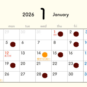 1月のご案内。... 2025年12月28日 1月のご案内です。 記載がない日は通常営業です。 二度手間にならない様に電話での問い合わせを・・・・・・続きを読む >> 出前授業。... 2025年12月18日 先日、市内の小学校で行われた『出前授業』にお呼ばれしました。 全部で8職種の方々もいらして、・・・・・・続きを読む >>